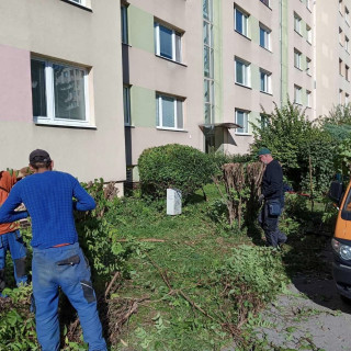 Práca našich zamestnancov sa v uplynulom týždni sústredila hlavne na orezy kríkov v rámci sídliska.